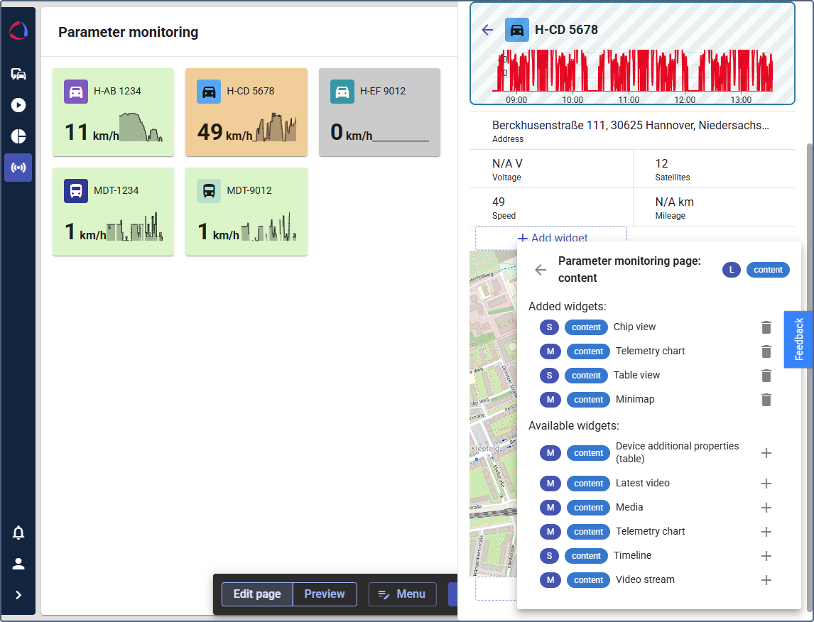 To add the Parameter monitoring page to Wialon Platform FleetSpace, use the Configuring the “Parameter monitoring” page guide.
