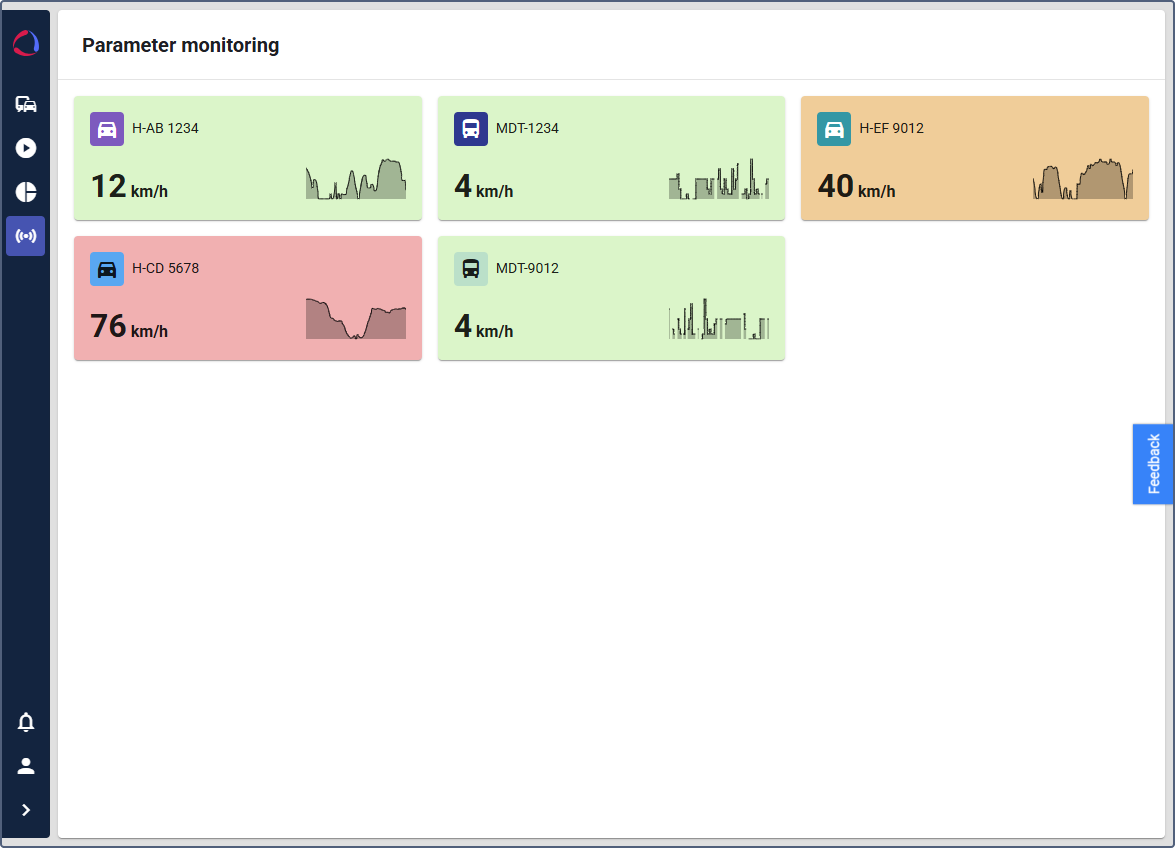 The parameter monitoring page displays the real-time status and data for several devices. It gives a quick overview of the devices and highlights any potential issues.