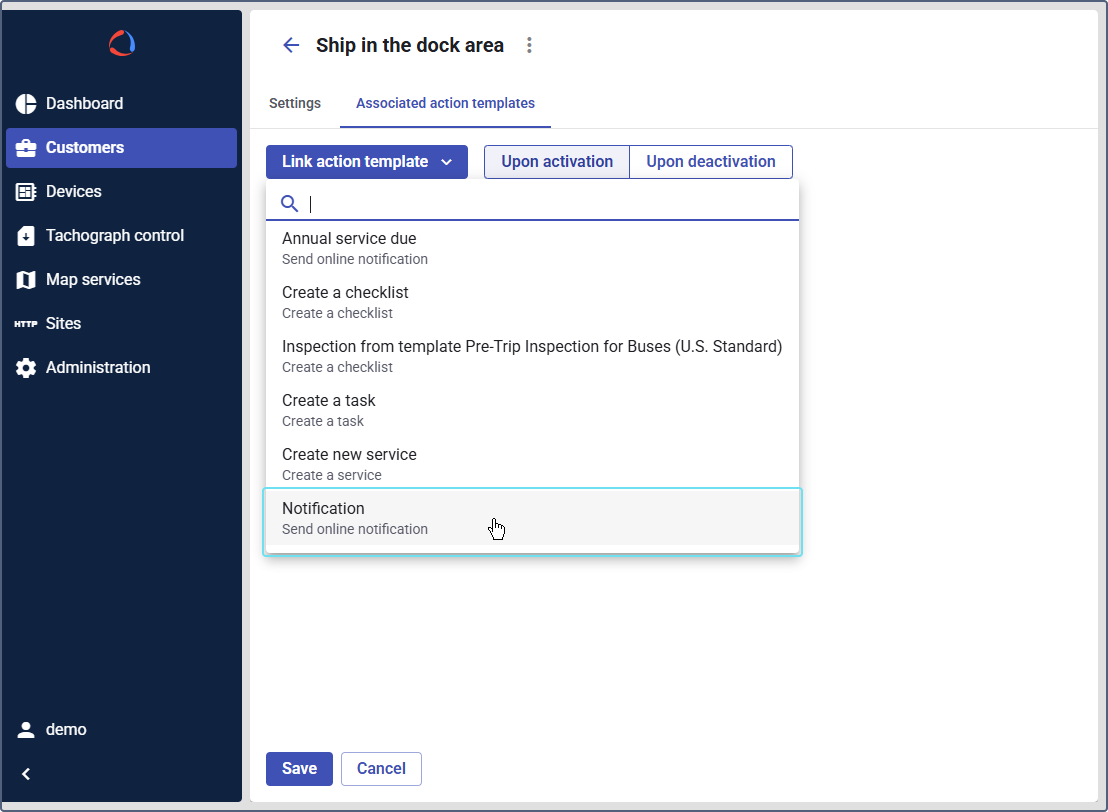 In this guide, we will configure an automated online notification that is sent when a ship enters the dock we created on the Geofences page.