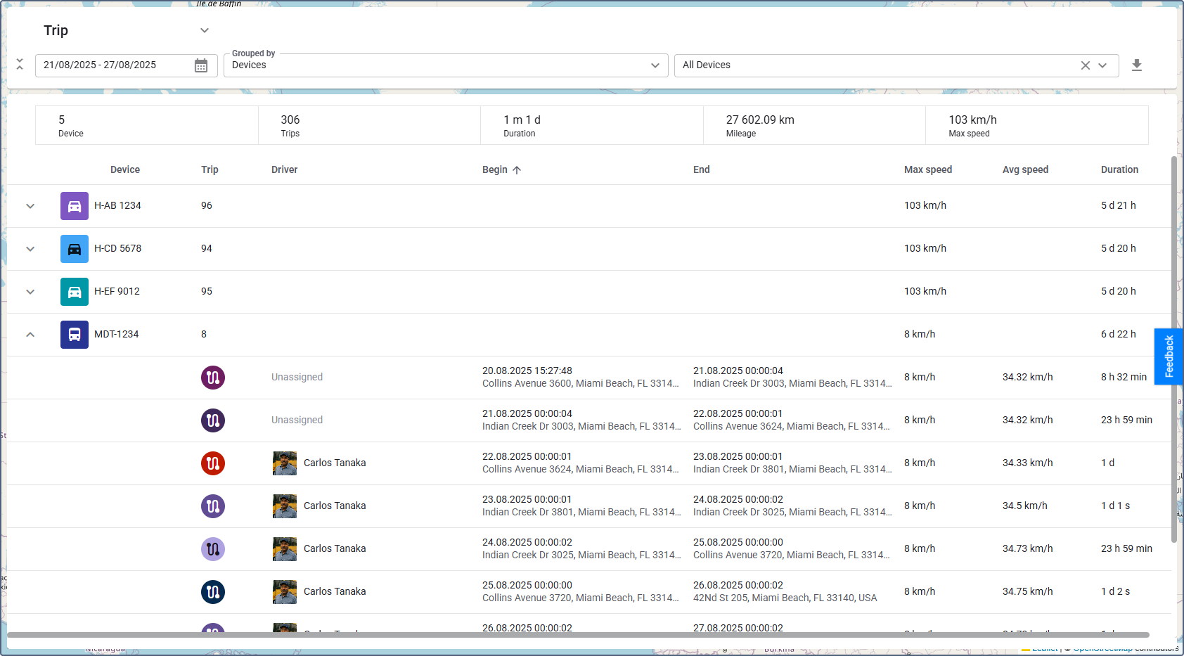 The Reports module allows you to analyze the activity of your vehicles and drivers.