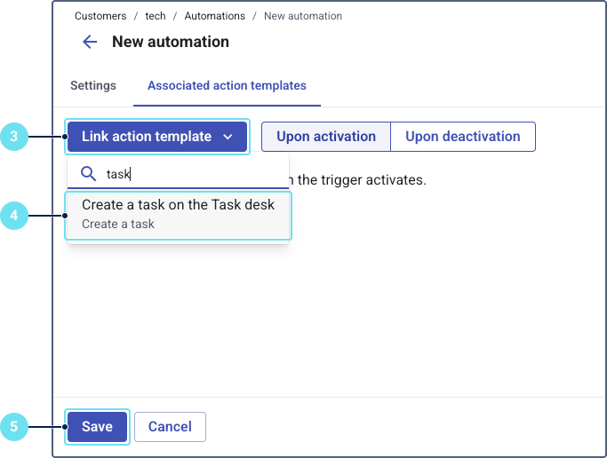 After creating the Create a task action template, you can create an automation that uses this template to generate tasks on the Task desk page.