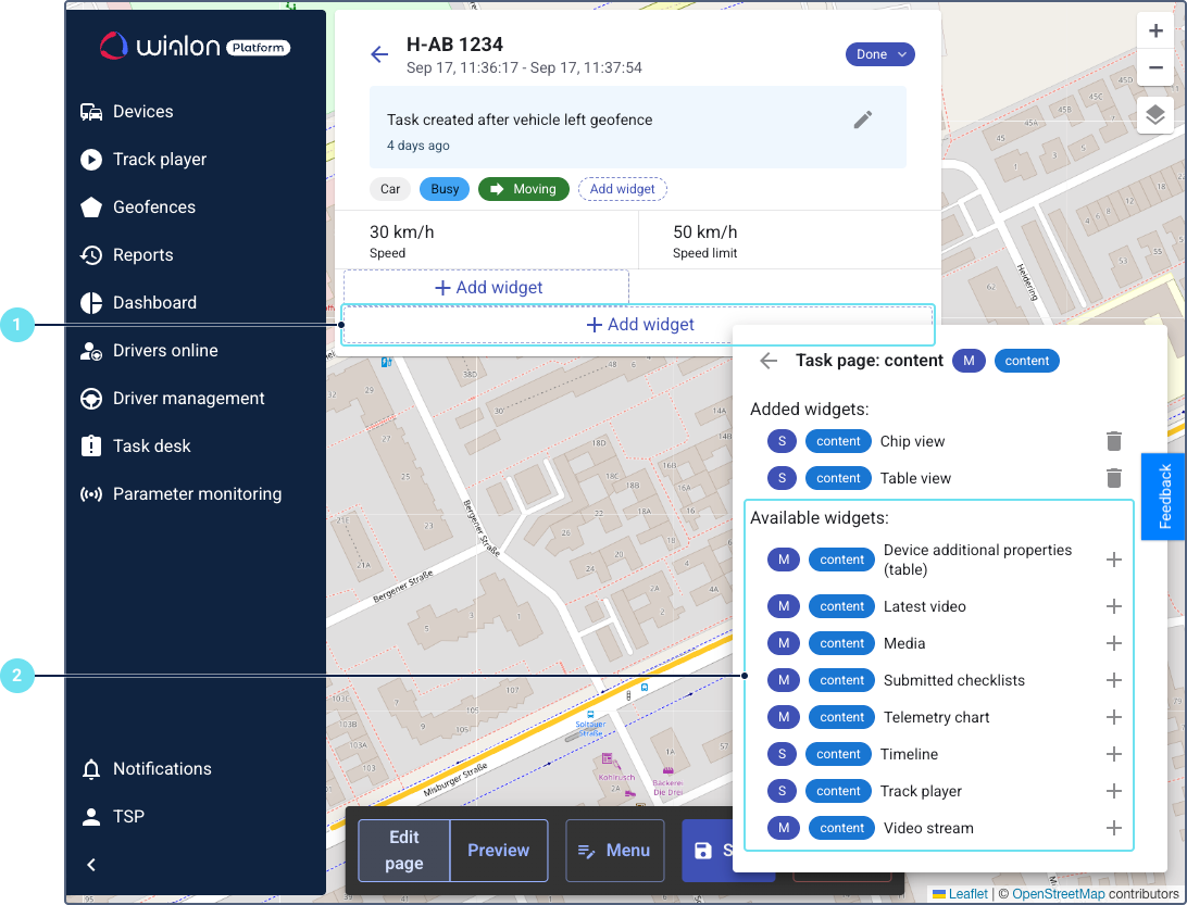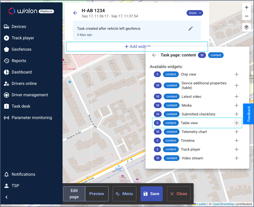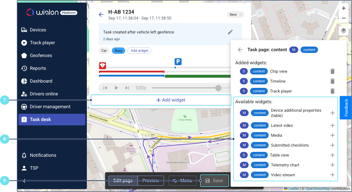 To enhance the task details page for your customers, you can add various widgets that provide real-time data, historical context, and quick access to vehicle information.