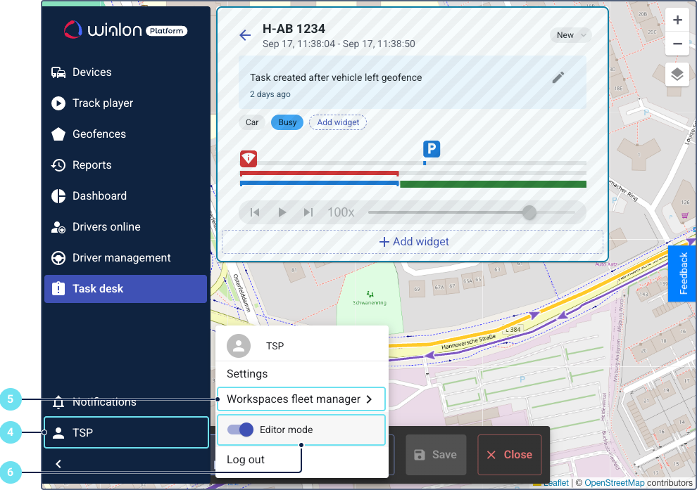 - Log in to Wialon Platform FleetSpace as the customer for configuration purposes.