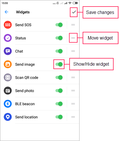 or hide them using the switch. To save the changes, tap the icon