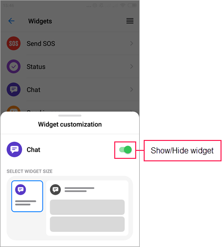 To go to the settings of a certain widget, tap the line with it. Here you can hide the widget using the switch or change its size by selecting the required option in the Select widget size block.