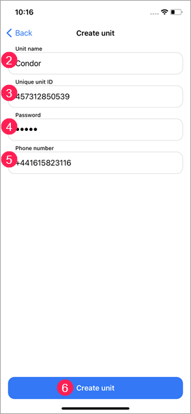 Log in to the application following the Authorization with the username guide. In step five, tap the New unit button.