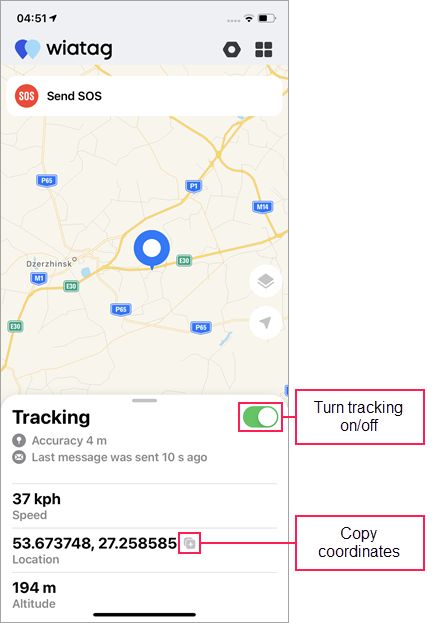 For the ability to disable sending positional data to the server, the Allow the user to turn off tracking in the mobile application option should be activated in the Configurator web application.