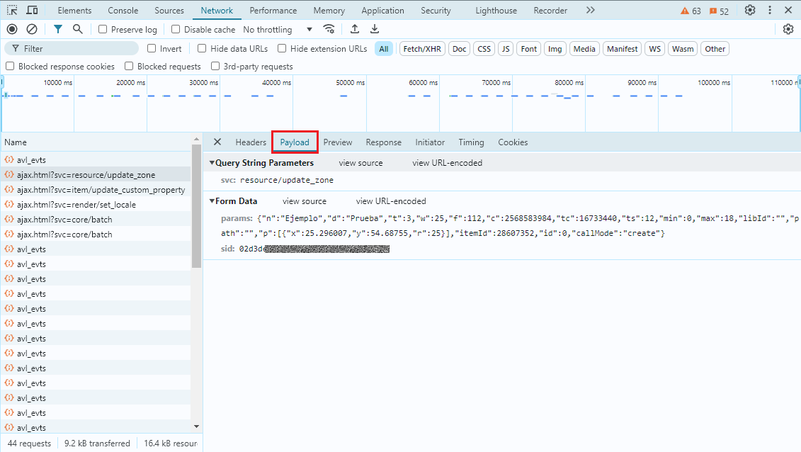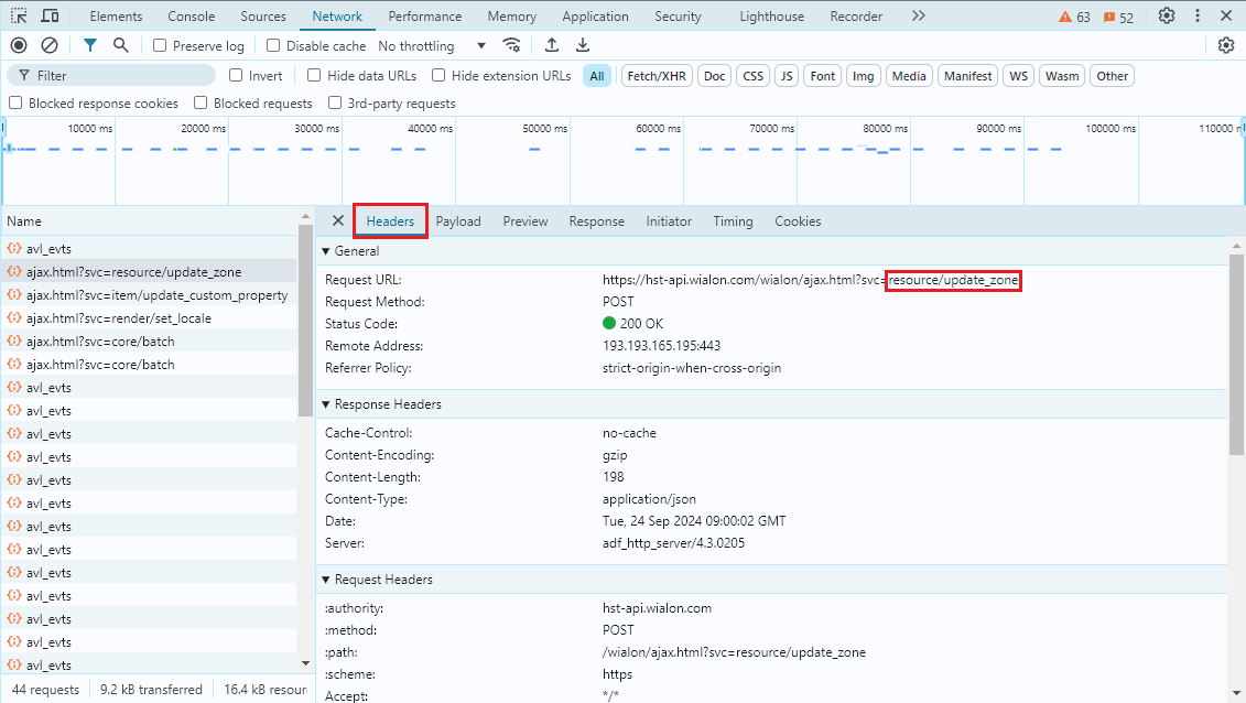 Al comenzar a estudiar el SDK, a menudo surge la necesidad de entender qué solicitud API se envía al servidor al realizar una u otra acción en la interfaz de Wialon. Esto se puede rastrear fácilmente utilizando las herramientas integradas del navegador para monitorear solicitudes de red.