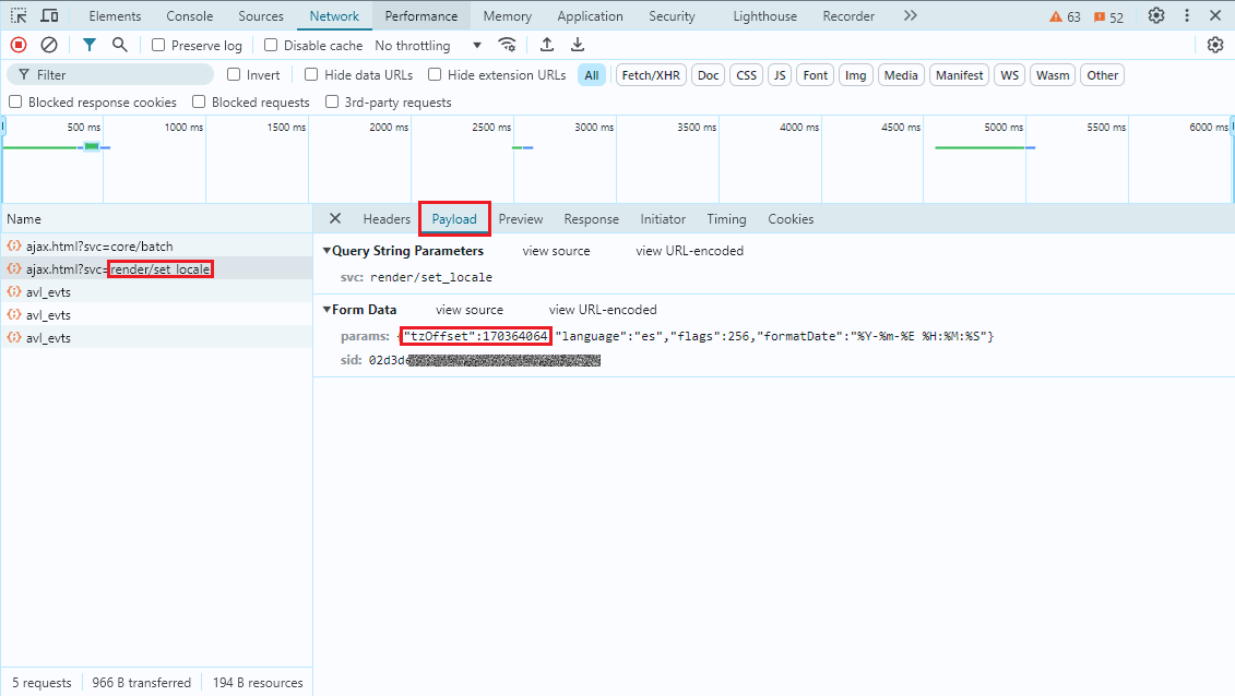 También se puede obtener el valor necesario del parámetro tzOffset mediante la visualización de solicitudes de red al cambiar la zona horaria del usuario en la interfaz web.