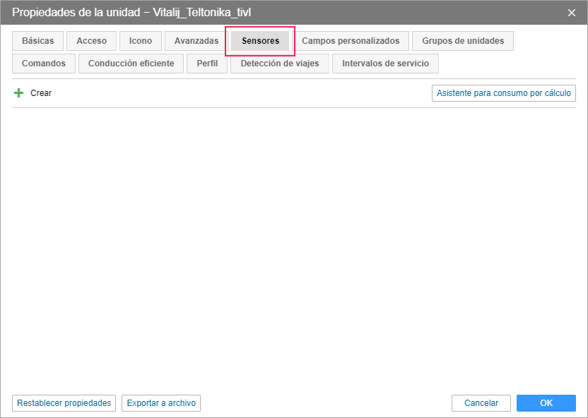 3. En las propiedades de la unidad en Wialon, abra la pestaña Sensores.