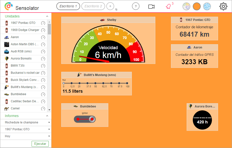 Por defecto, el fondo del escritorio es blanco. Sin embargo, por medio de los botones en la barra superior se puede cambiar el color del fondo, establecer en función del fondo una imagen (indicando su URL) o el mapa Gurtam Maps.