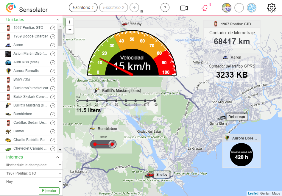- Informes. La barra de informes (a la izquierda bajo la lista de unidades)