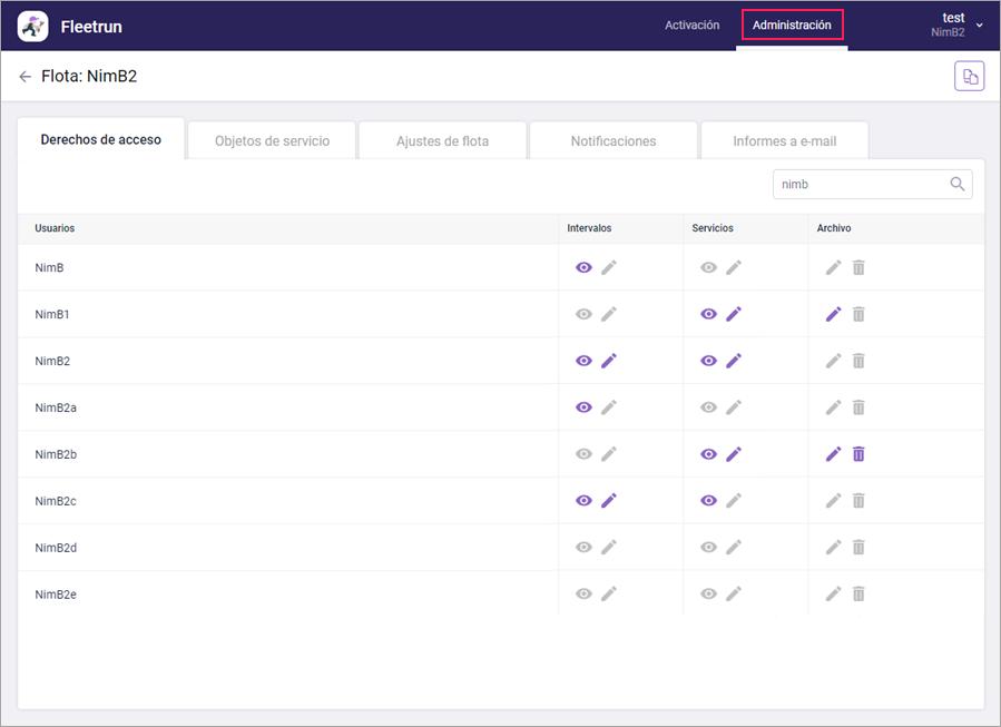 El administrador de una flota es el usuario para el que ha sido activada la flota y todos los usuarios situados en la jerarquía vertical más arriba. No se puede dar derechos de administrador a un usuario manualmente.