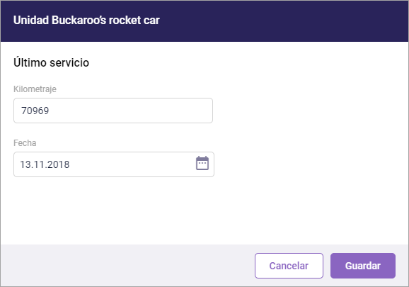 Por defecto para el valor Último servicio se usa la información disponible en el momento de asignar intervalo. Para indicar estos datos manualmente, apriete el icono