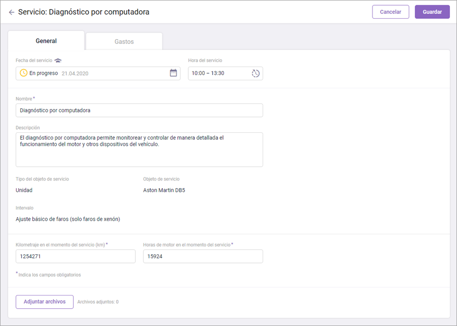 - se puede cambiar el estado Próximo por En progreso o Realizado. También se puede rechazar tal servicio (botón Rechazar en el rincón superior derecho de la página);