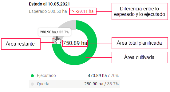 | Número en el centro de la gráfica | Es el área total de campos que deben ser cultivados durante la campaña. |