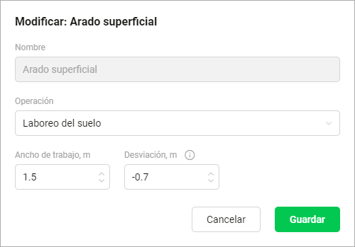 También se puede indicar la operación, el ancho de trabajo y la desviación en Wialon en las propiedades del remolque (solo si todavía no están indicados en Hecterra).