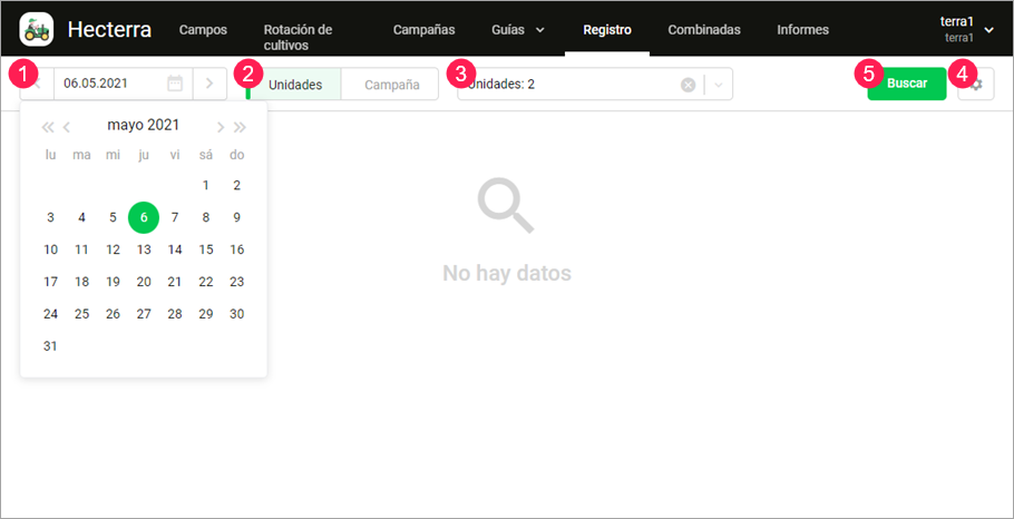 Después de realizar algunos cambios en Hecterra o Wialon (por ejemplo, cambio del ancho de trabajo de un implemento, ajuste del consumo del combustible, asignación de conductores y remolques), es necesario repetir la búsqueda para que el sistema muestre cultivaciones considerando los nuevos datos.