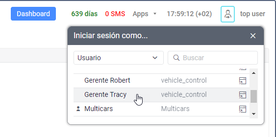 También puede entrar en el sistema bajo el nombre de otro usuario (subordinado). Para hacerlo, debe tener el acceso total a este usuario.