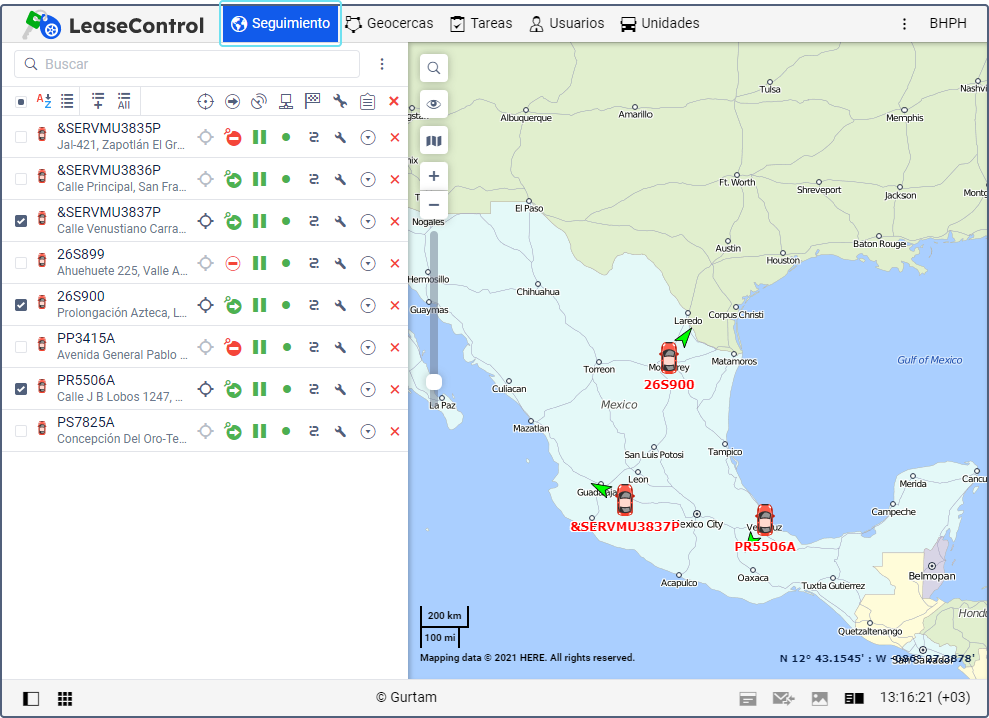 Búsqueda de unidades en la pestaña «Seguimiento»