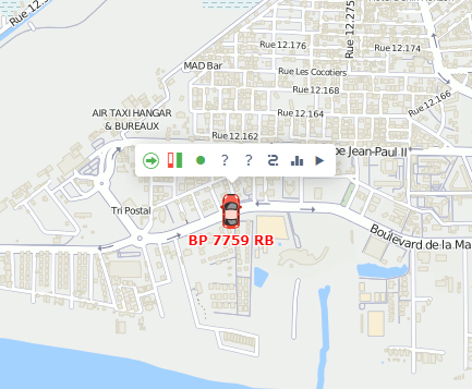 Una vez hecho clic en una unidad en el mapa, se abre un menú encima de la unidad. Contiene los mismos iconos y botones que se han elegido para el área de trabajo del Panel de seguimiento. Además, independientemente de los iconos/botones elegidos, en este menú siempre habrá botones para generar un informe rápido y para construir un recorrido rápido.