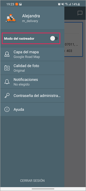 Para activar el modo de rastreador, active el botón de alternancia en la sección Modo de rastreador de los ajustes de la aplicación (ver más sobre los ajustes del modo).