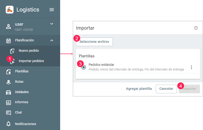 En la barra de navegación en el punto Planificación escoja Importar pedidos.
