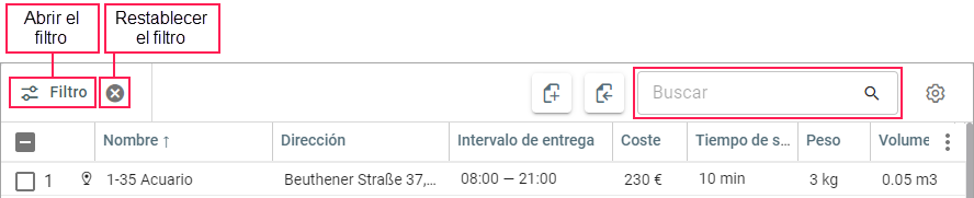 Por medio del filtro se puede clasificar los pedidos en la tabla según diferentes criterios. Para utilizar el filtro, haga clic en el icono