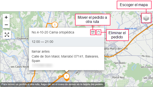 Asimismo, puede mover un pedido a otra ruta desde el mapa.