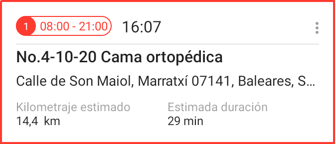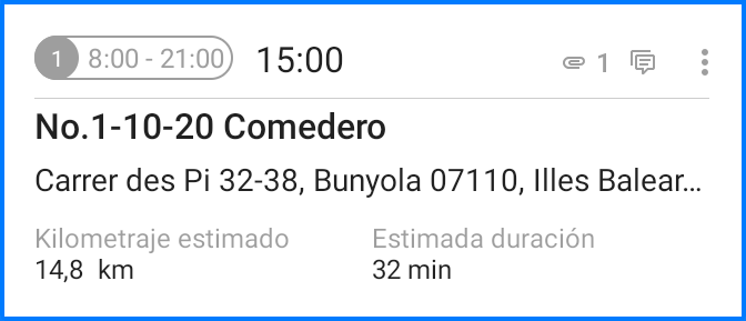 En las tarjetas de los puntos de rutas que no tienen un estado indicado (confirmado o rechazado) se muestra la siguiente información: