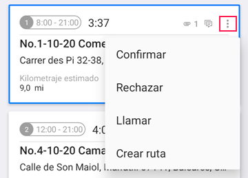 Pulse la tarjeta del pedido dos veces para ver la información detallada sobre él.