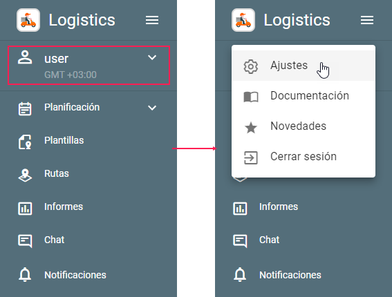 En los ajustes de la aplicación se puede escoger las unidades de medida, el mapa y el algoritmo de planificación de rutas, configurar notificaciones, crear almacenes, campos personalizados para los pedidos, etc.