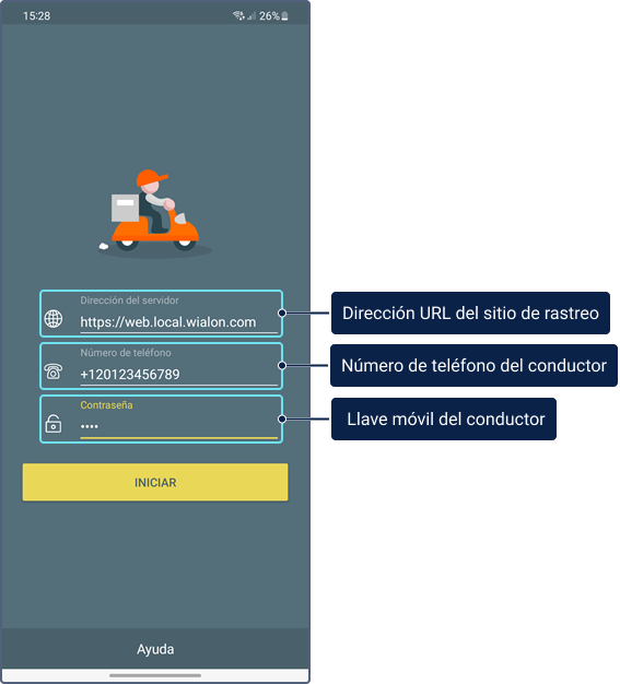 Al iniciar sesión en la aplicación móvil, rellene los siguientes campos: