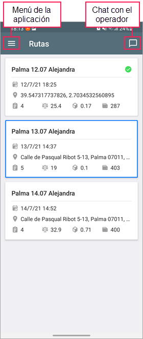 en la parte superior de la pantalla; para ir al chat con el operador, utilice el icono