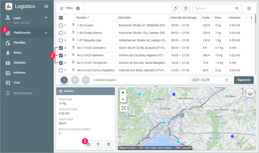 2. Marque en la tabla los pedidos que desea exportar.