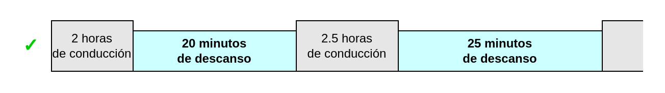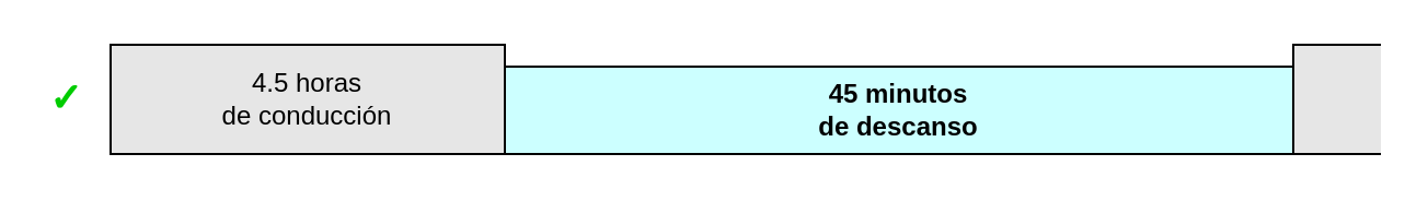 Se puede conducir un máximo de 4,5 horas sin parar para descansar. Después de esto, se debe hacer una pausa de 45 minutos.