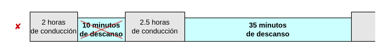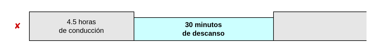 Si dentro de las 4,5 horas de conducción se hace una pausa de más de 15 minutos pero menos de 45 minutos, al final del período de conducción de 4,5 horas se puede hacer una pausa de una duración que, sumada a la pausa anterior, sume 45 minutos. Si la pausa dura menos de 15 minutos, no se contabilizará.