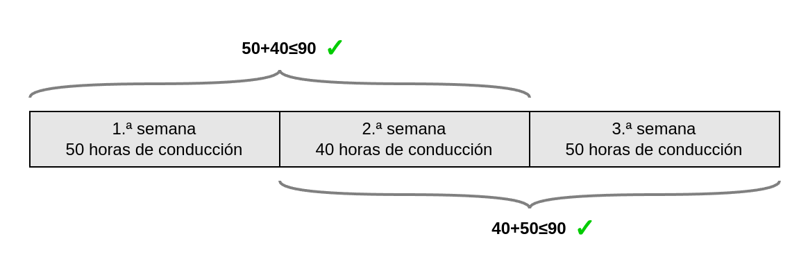 El tiempo máximo de conducción durante una semana laboral es de 56 horas, y durante dos semanas consecutivas es de 90 horas.