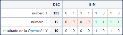 Por ejemplo, el resultado de la Operación Y entre los números 122 y 15 tendrá el siguiente aspecto: