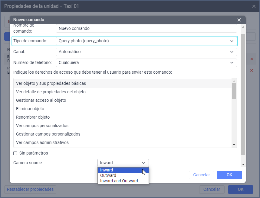 Para obtener vídeos de los eventos generados por el dispositivo, active la opción Recibir automáticamente archivos del dispositivo en la pestaña Vídeo de las propiedades de la unidad. A continuación, envíe el comando de carga con la dirección que se muestra después de activar la opción, por ejemplo: