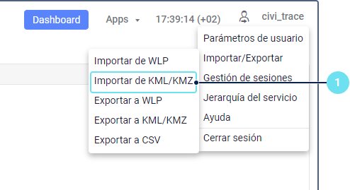 En el menú de usuario escoja el punto Importar/Exportar y, luego, Importar de KML/KMZ.