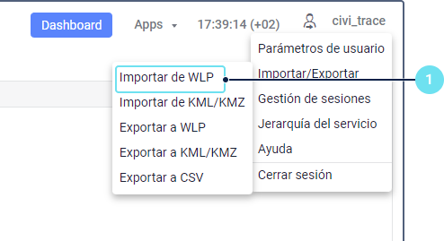 En el menú de usuario escoja el punto Importar/Exportar y, luego, Importar de WLP.