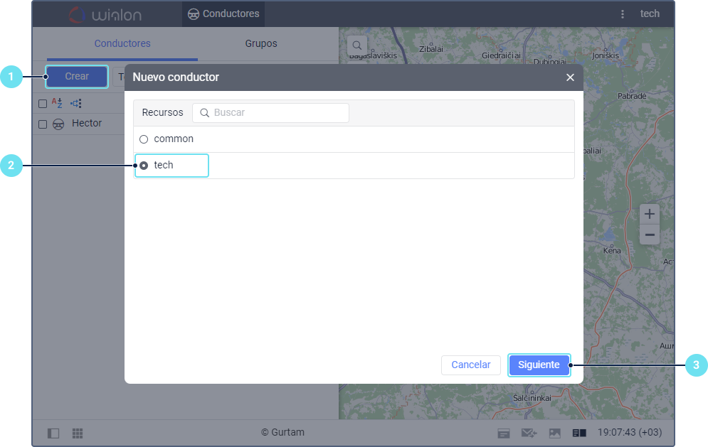 Seleccione el recurso en el que quiere crear el conductor, si tiene acceso a más de un recurso.