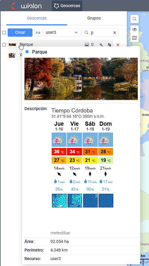 - visualizar la información en descripciones emergentes de geocecercas.