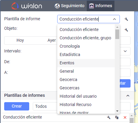 - en informes para precisar al conductor, sensor, evento (infracción), ruta o su geocerca y durante la selección de geocercas;