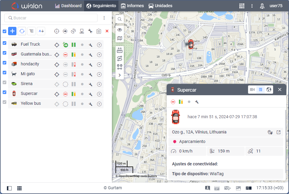 - haga doble clic sobre el nombre de la unidad en la lista de trabajo, tras lo cual la unidad se mostrará también en el centro del mapa;