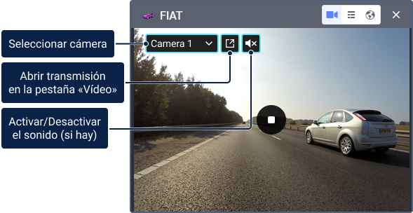 En la parte superior derecha de la ventana se puede seleccionar una cámara, si hay varias, y pasar a ver la transmisión en la pestaña Vídeo.