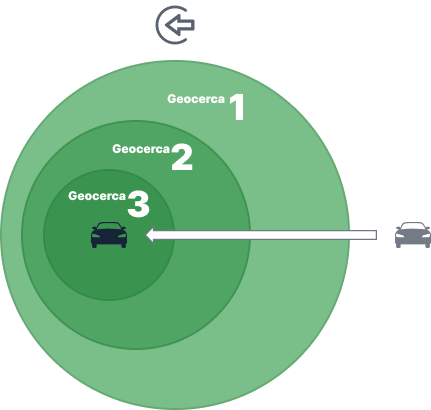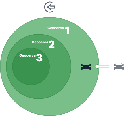 | Y | La notificación se activa cuando la unidad se encuentra simultáneamente en todas las geocercas elegidas. Ejemplo. En los ajustes de la notificación, se han seleccionado la Geocerca 1, la Geocerca 2 y la Geocerca 3. La Geocerca 3 está dentro de la Geocerca 2 y de la Geocerca 1. Cuando la unidad está en la Geocerca 3 y, por lo tanto, en todas las demás geocercas al mismo tiempo, se activa la notificación. |