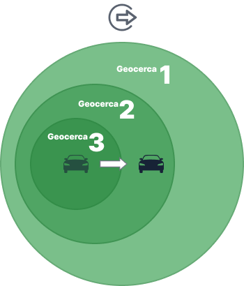 | O | La notificación se activa cuando la unidad abandona cualquiera de las geocercas seleccionadas si antes ha estado al mismo tiempo en todas las geocercas seleccionadas. Ejemplo. En los ajustes de la notificación, se han seleccionado la Geocerca 1, la Geocerca 2 y la Geocerca 3. La Geocerca 3 está dentro de la Geocerca 2 y de la Geocerca 1. La unidad se encuentra en la Geocerca 3 y, por lo tanto, en las tres geocercas simultáneamente. Cuando sale de la Geocerca 3, pero aún permanece en la Geocerca 2 y la Geocerca 1, la notificación se activa. La notificación también se activará si la unidad sale de la Geocerca 3 a la Geocerca 1 o abandona todas las geocercas a la vez. Si la unidad ha estado en la Geocerca 2 o en la Geocerca 1 y las abandona, la notificación no se activará. |