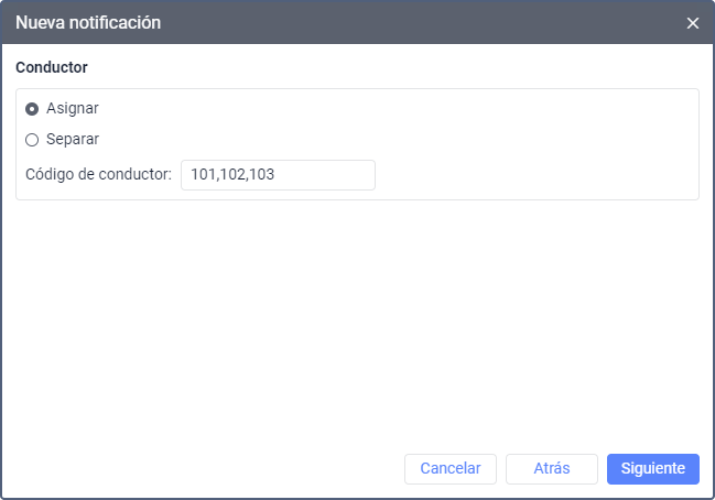 Las notificaciones de este tipo permiten conocer sobre asignación o separación de conductores de unidades.